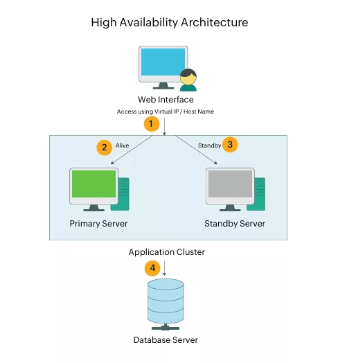 ADManager Plus propose une architecture redondante avec la possibilité de configurer un nœud secondaire (serveur standby) prêt à prendre automatiquement le relais en cas de défaillance du nœud principal. Cette bascule transparente garantit une continuité de service immédiate, sans impact visible pour les utilisateurs ou les processus automatisés.
